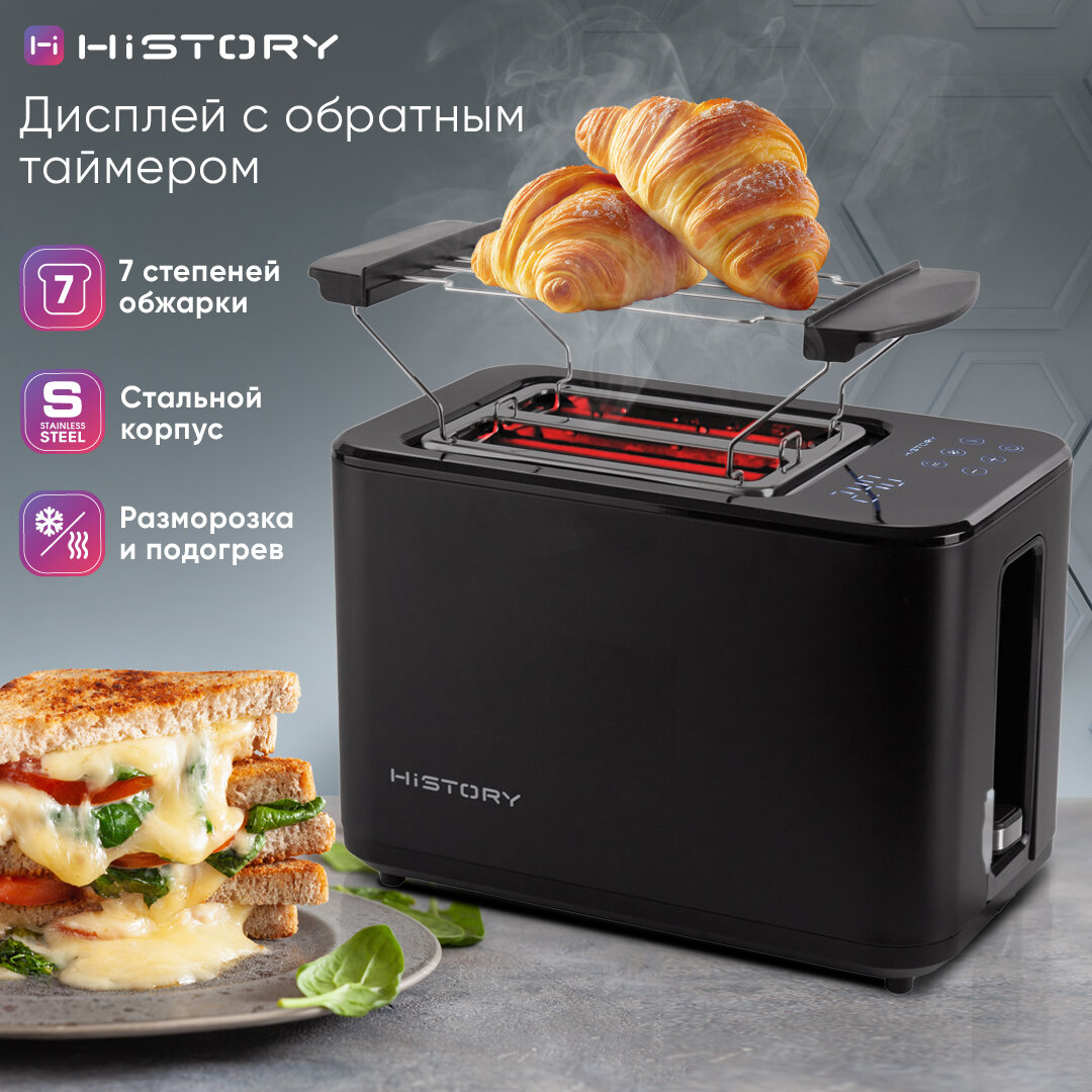 Купить Тостер стальной с настройками температуры HiSTORY IT-XD225, черный