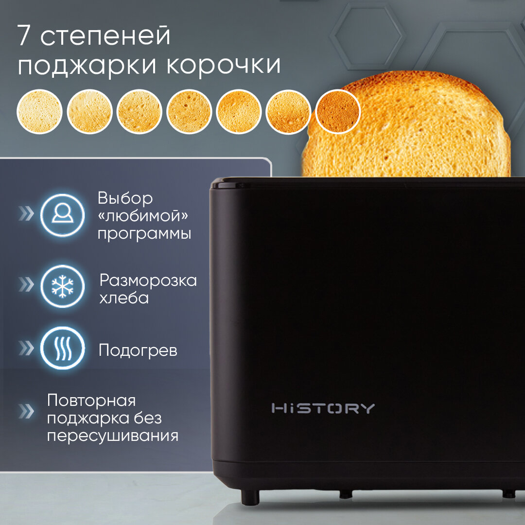 Тостер стальной с настройками температуры HiSTORY IT-XD225, черный интересное: