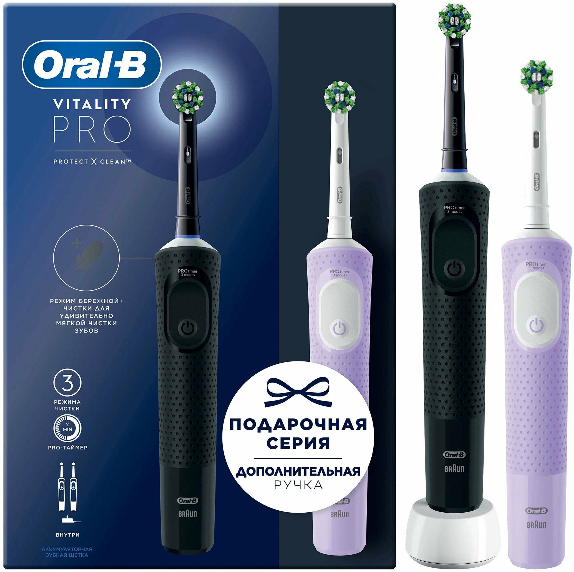 Набор электрических зубных щеток Oral-B Vitality Pro цвет:черный и лиловый [80368953]