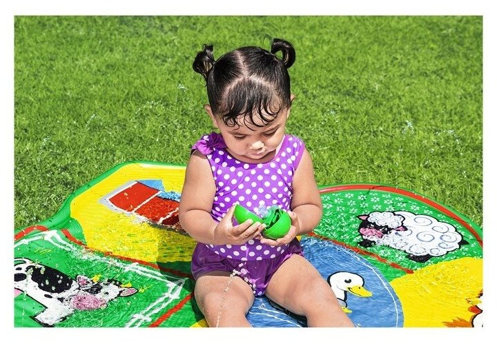 Bestway Надувной бассейн для малышей Ферма 165*112 см, с разбрызгивателем 52564