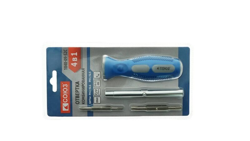Отвёртка-перевёртыш универсальная Союз "1040-09-S2C", 4 предмета интересное: