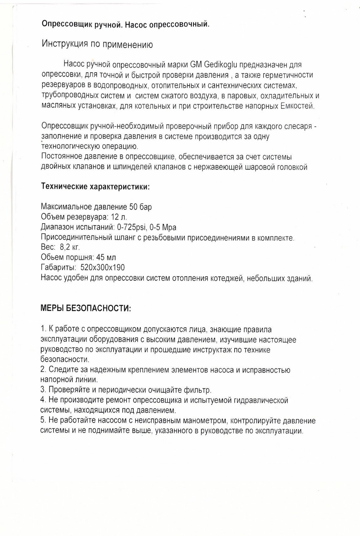 GM COBRA Насос опрессовочный ручной до 50 Бар GM 0030 интересное: