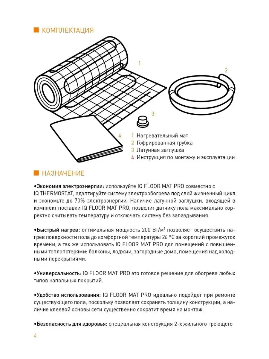 Тонкий самоклеящийся греющий мат IQ FLOOR MAT PRO 200Вт/м.кв - 0,5 м² 02001 оранжевый