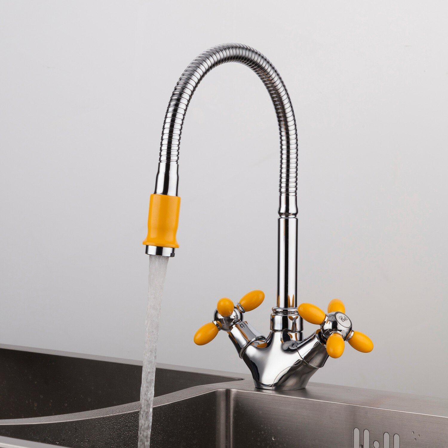 Смеситель для кухни с гибким изливом Frud R43127-9 хром+желтый