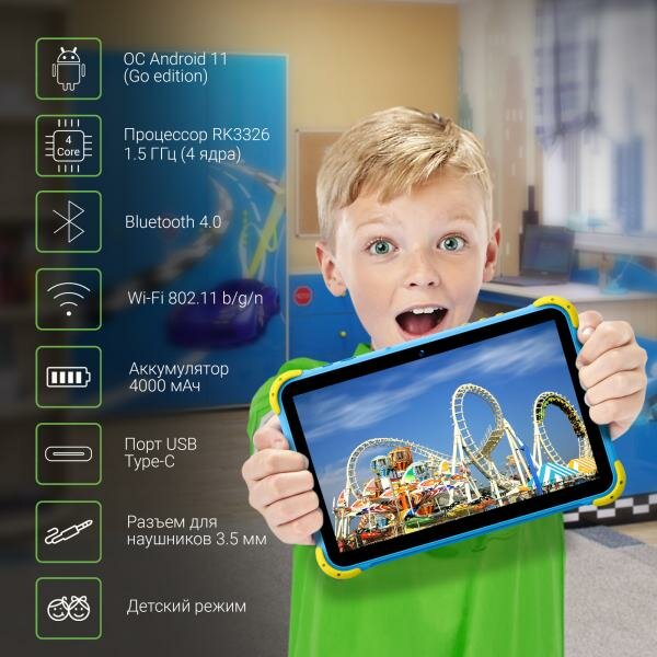 Планшет Digma Kids 1210B RK3326 (1.5) 4C RAM2Gb ROM16Gb 10.1 IPS 1280x800 Android 11.0 Go синий 2Mpix 0.3Mpix BT WiFi Touch microSD 128Gb 4000mAh интересное: