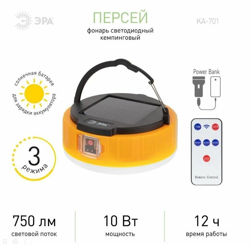 Фонарь кемпинговый светодиодный KA-701 "Персей" аккумуляторный на солнечной батарее+пульт Эра ЭРА Б0054044 (1 шт.)