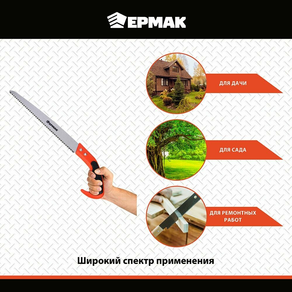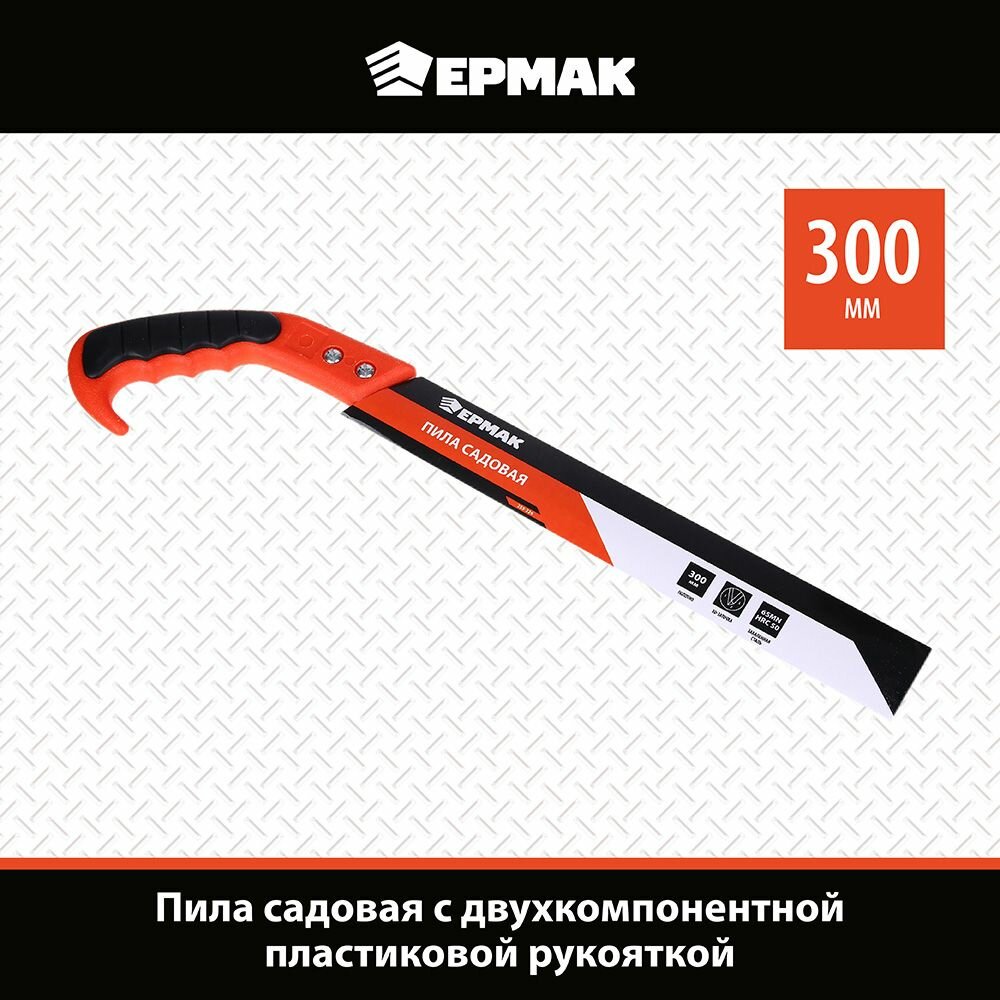Пила садовая ермак, 300 мм рабочая часть, углеродистая сталь, двухкомпонентная пластиковая рукоятка