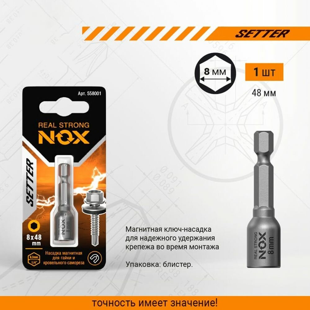 NOX Ключ-насадка магн 8x48мм, 1 шт карта NUT SETTER 558001 интересное: