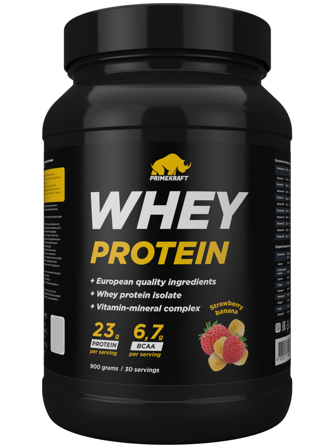 Купить Протеин сывороточный PRIMEKRAFT Whey Protein, Клубника-банан (Strawberry-banana), банка 900 г / 30 порций