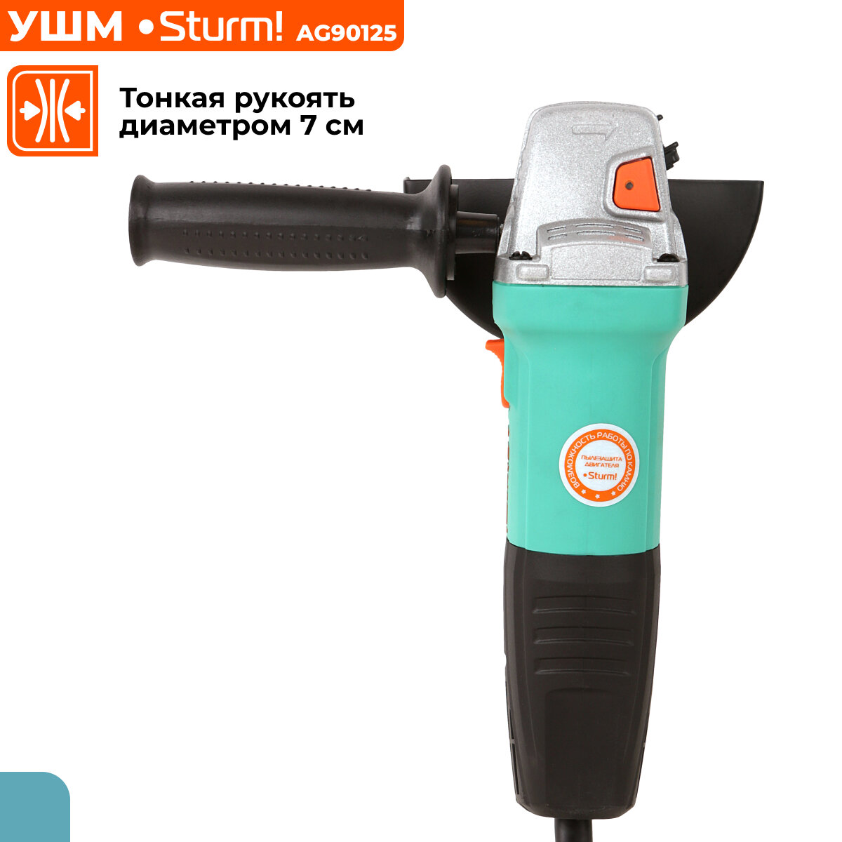 Машина углошлифовальная Sturm (AG90125), 125 мм, 900 Вт, 10000 об/мин, тонкая рукоять, mod T