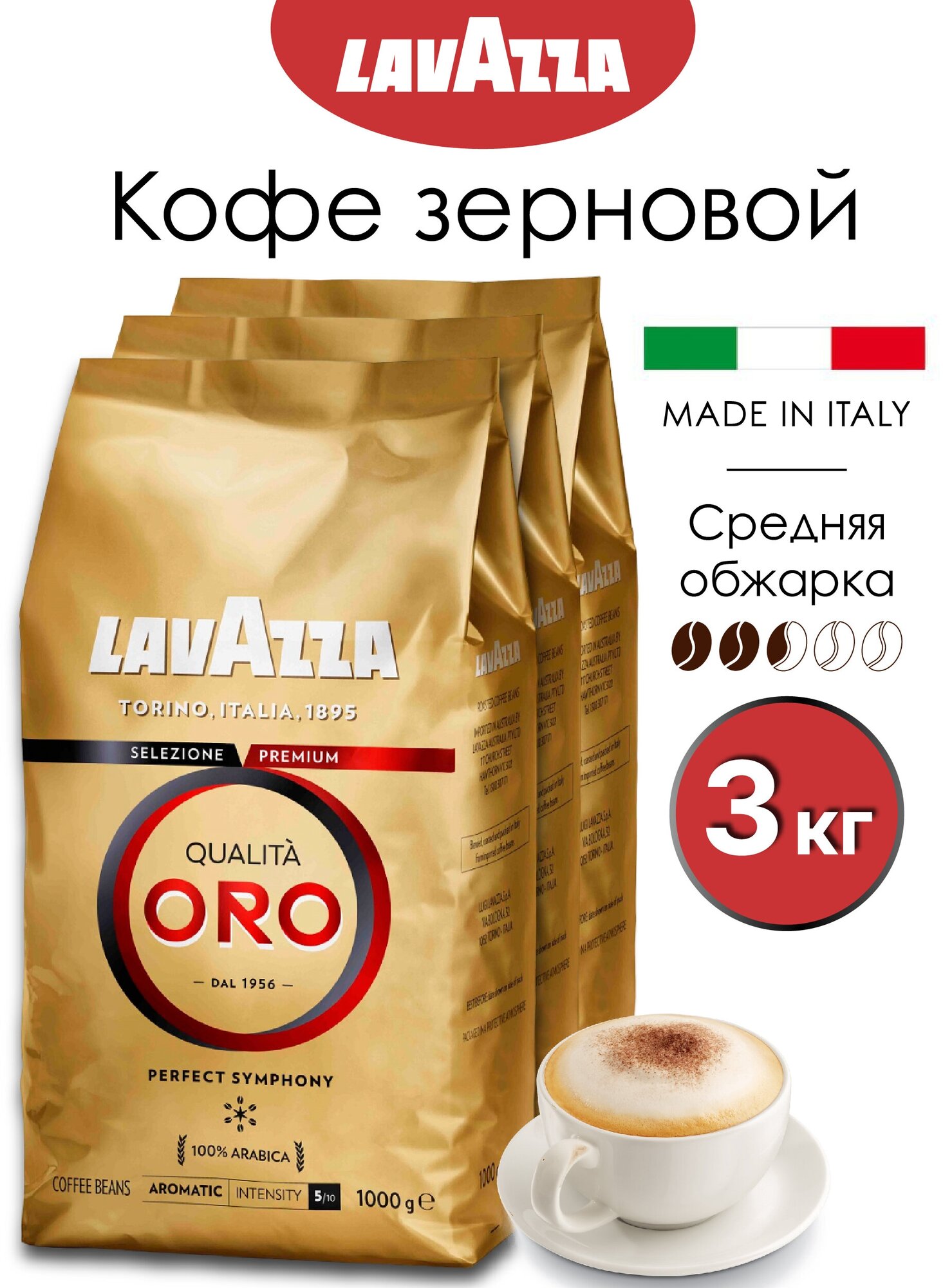 Кофе в зернах Lavazza Qualita Oro, 3 уп., 1 кг