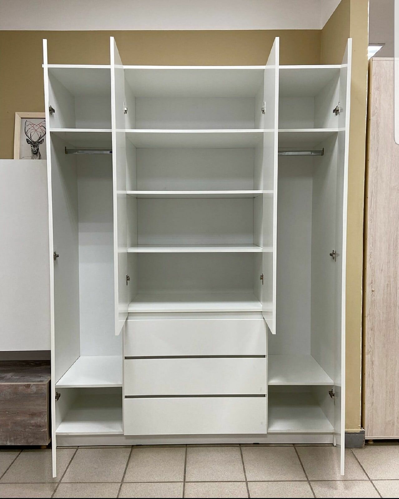 Вместительный шкаф. Сборка не сложная. Есть конечно нюансы в плане, отбитых кусочков на некоторых дверях, но это касается доставки.