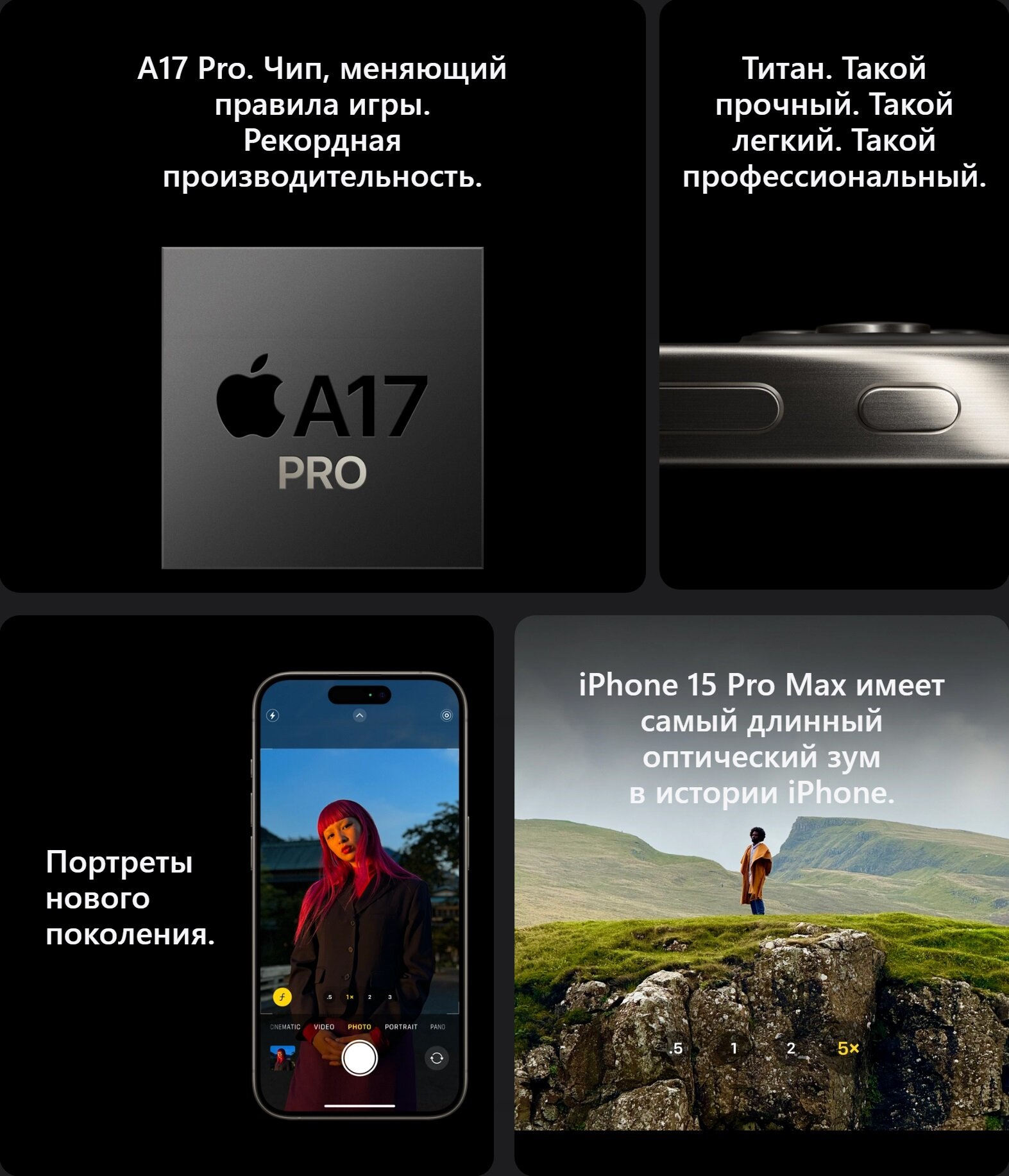 Смартфон Apple iPhone 15 Pro Max 1 ТБ, Dual nano SIM, Black Titanium (черный титан)