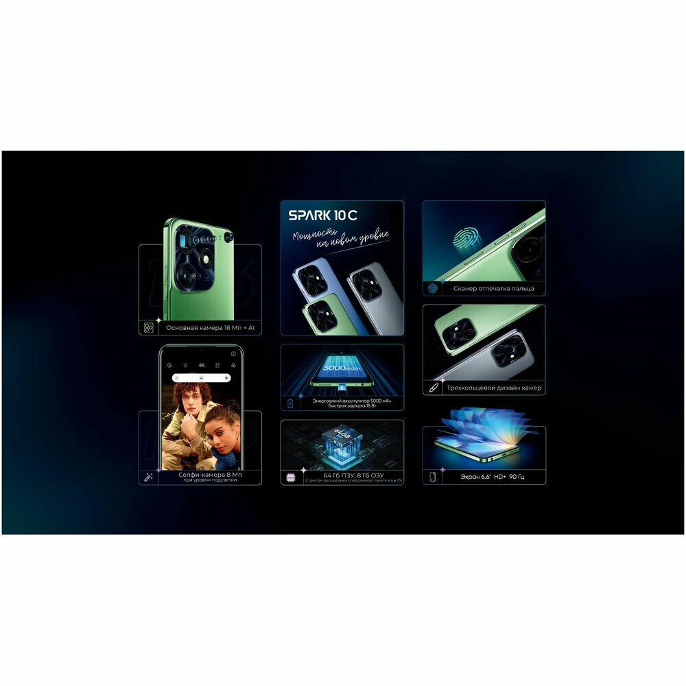 Смартфон Tecno Spark 10c 64 ГБ зеленый
