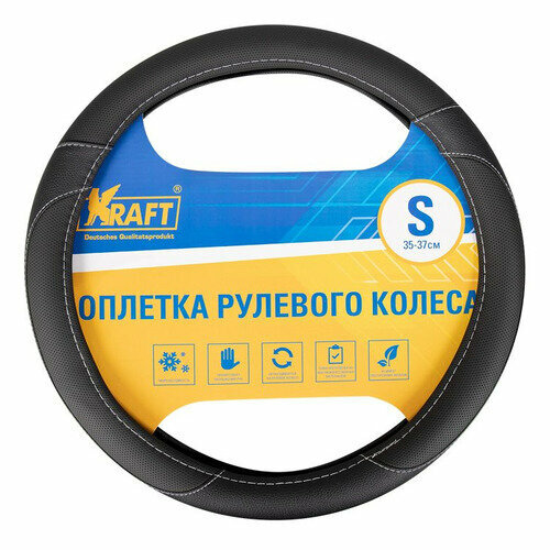 Купить Оплетка руля "S" d35-37см иск. кожа с перфорацией, черная, KRAFT KT 800312