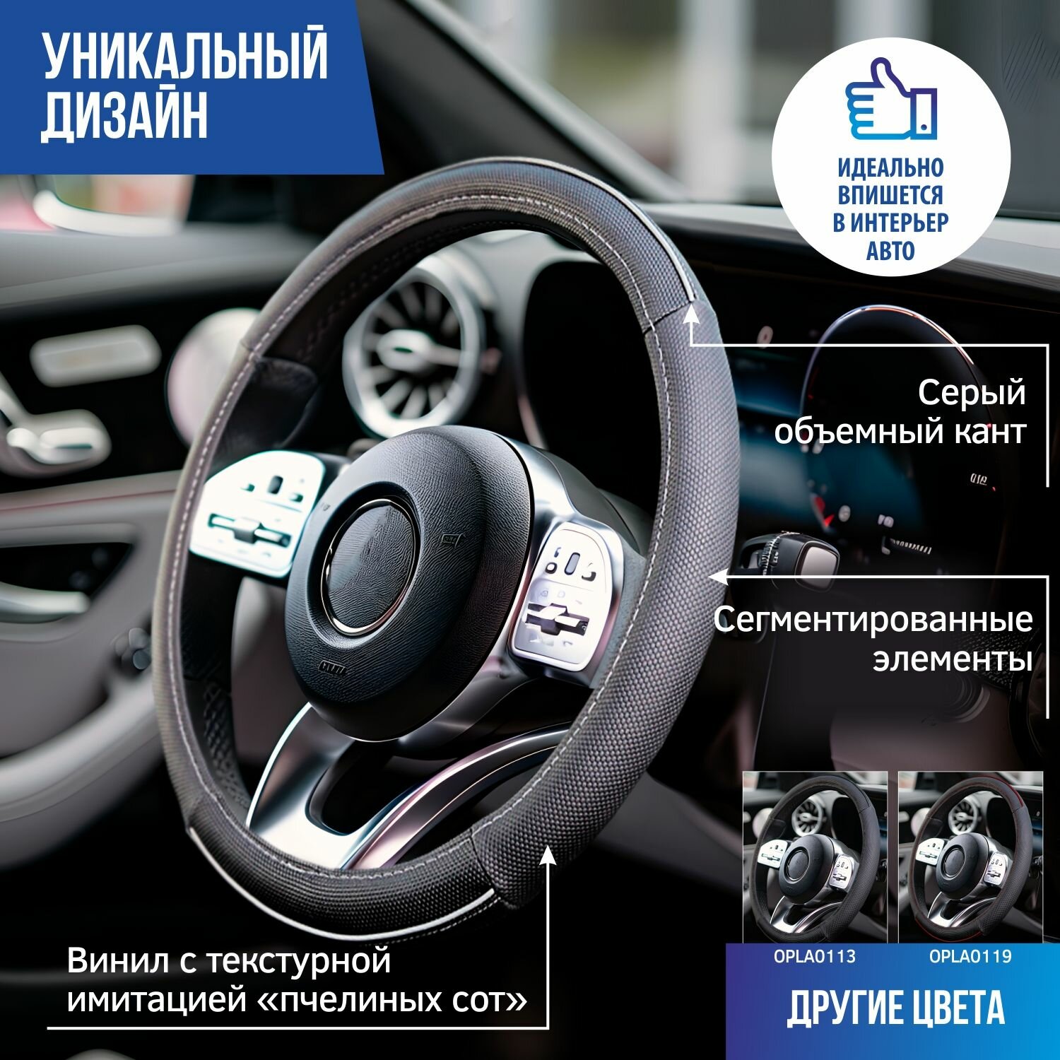 Оплетка на руль M 38см винил серый (AZARD) интересное: