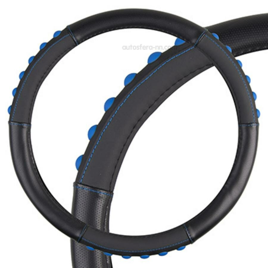 Оплетка на руль Pop It-1 SKYWAY M (37-39) черный; синий экокожа, S01102489