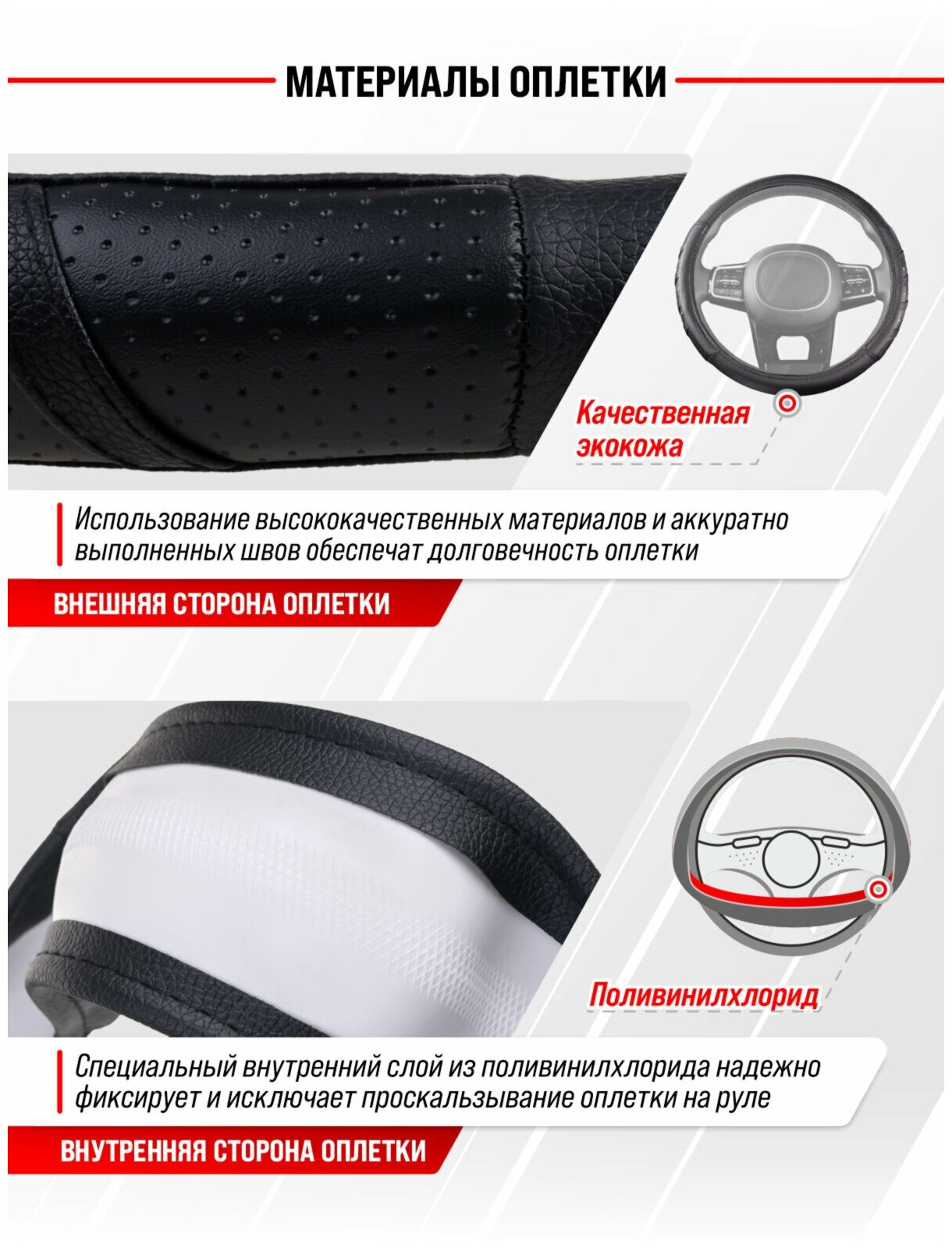 Оплетка SKYWAY Luxury-3 на руль, экокожа, черный, размер M, диаметр руля 37/38/39 см, S01102264