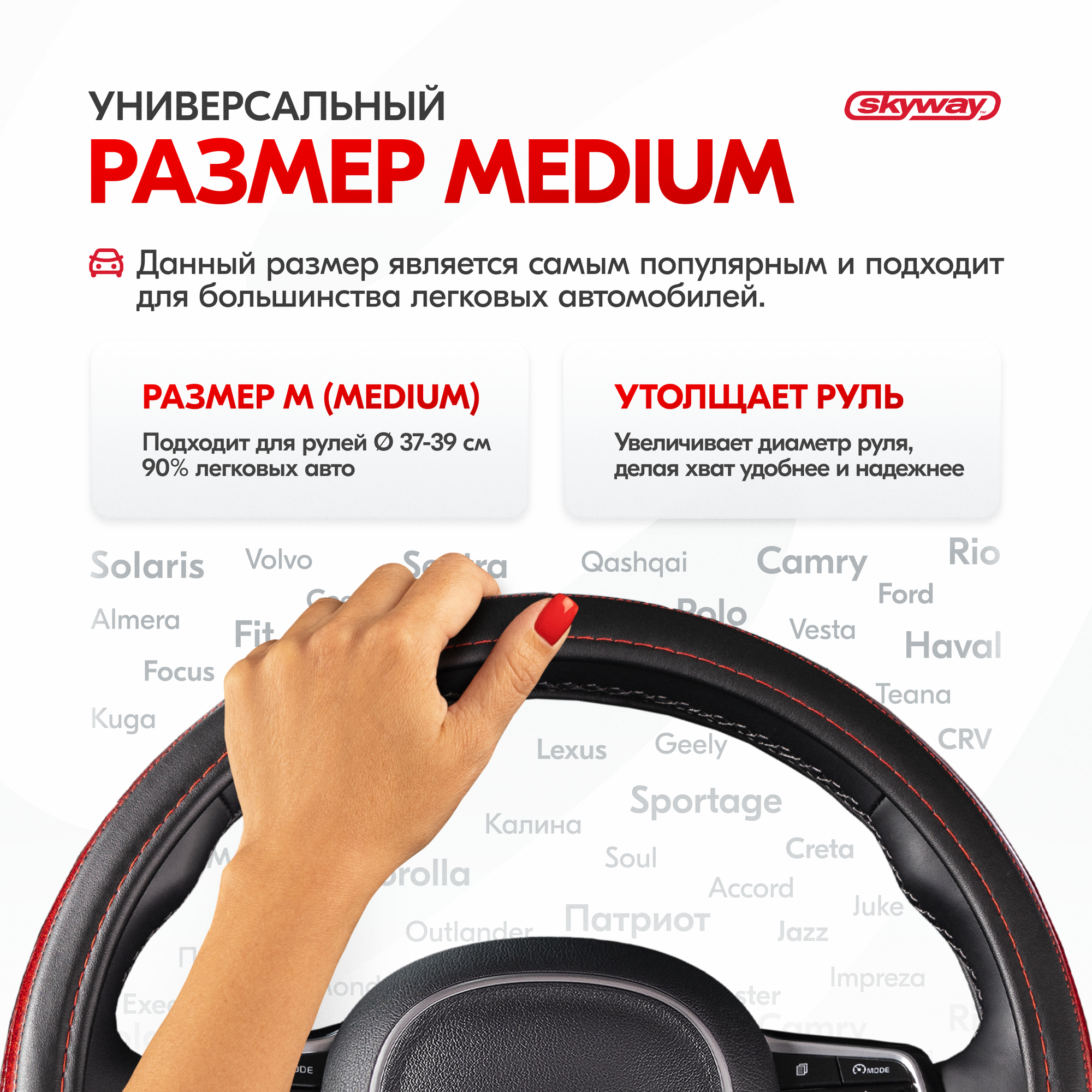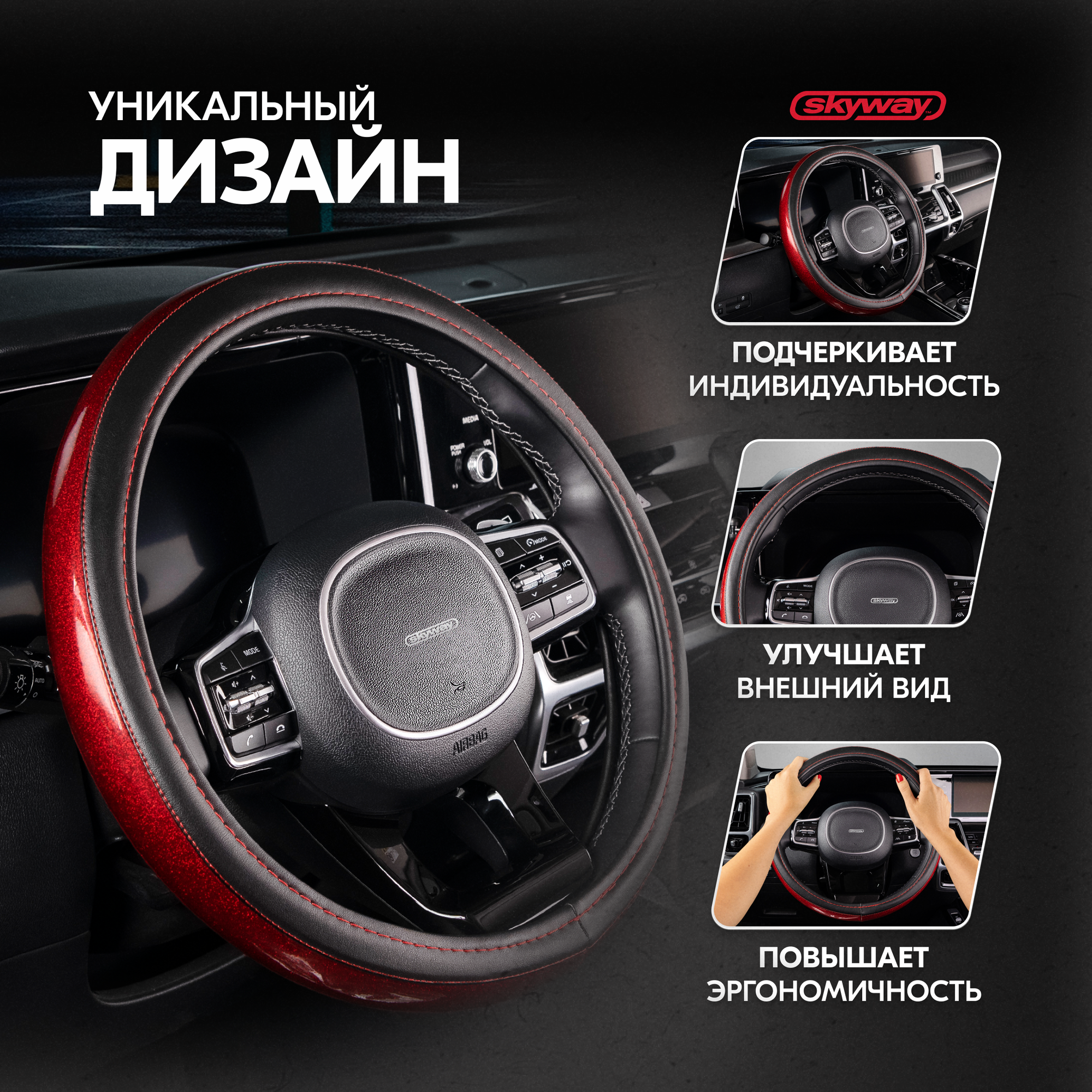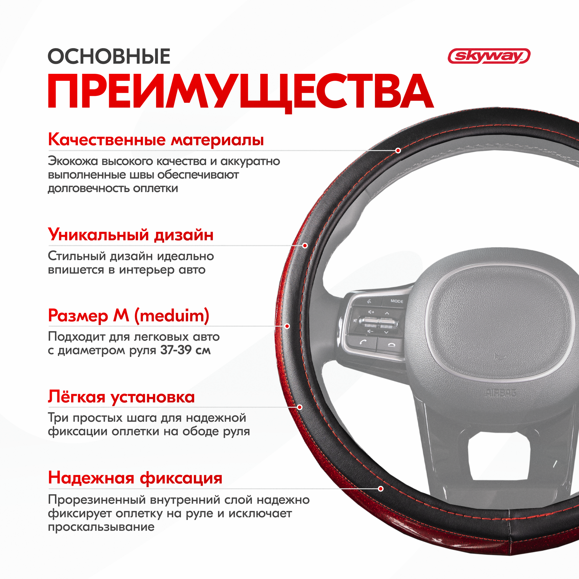 СохранитьОплетка на руль Luxury-7 SKYWAY M (37-39) черный; красный экокожа, S01102434 интересное: