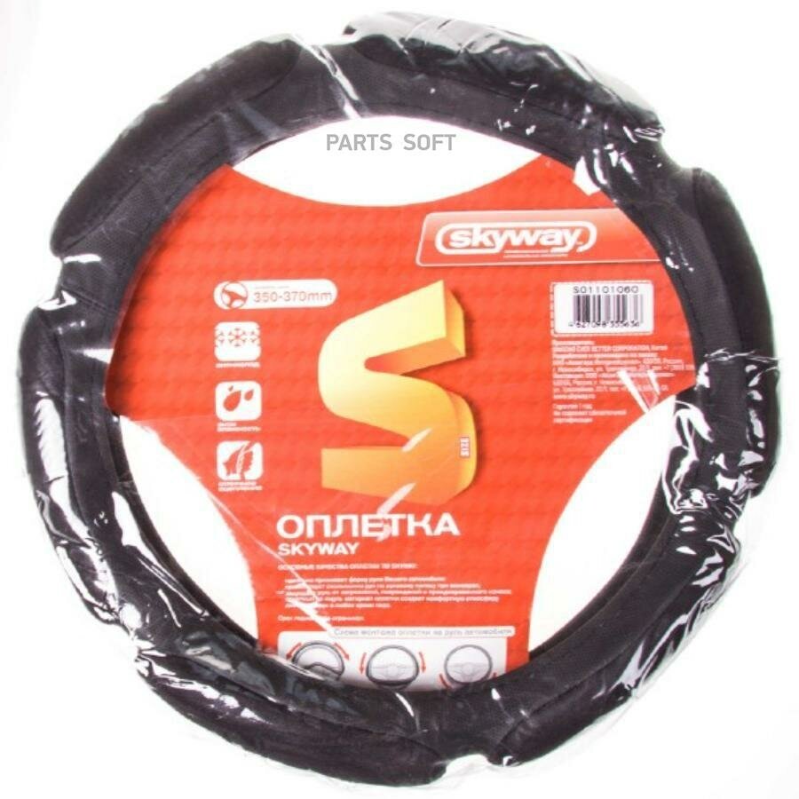SKYWAY S01101060 Оплетка руля S 35-37см. замша Sponge classic Черная 6 подушечек SKYWAY (S01101060)