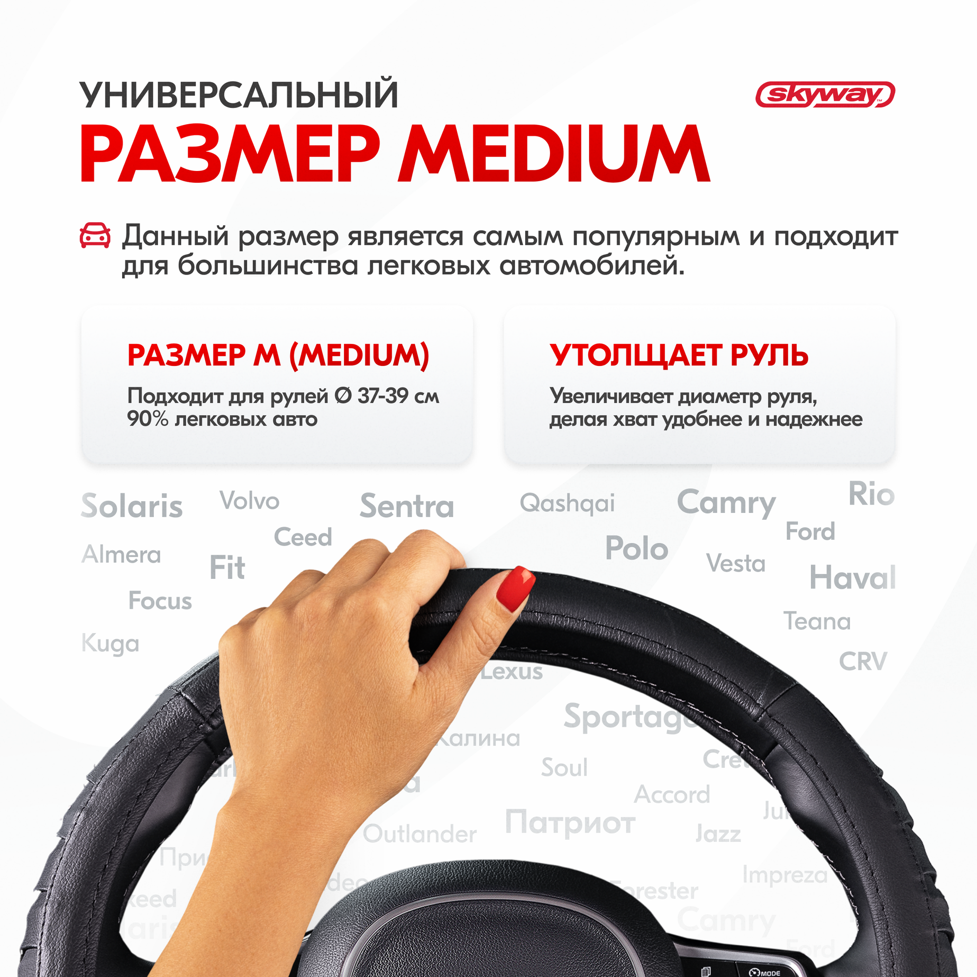 Купить Оплетка на руль M "SKYWAY" Real-5 натуральная кожа, черный SKYWAY S01108008 | цена за 1 шт