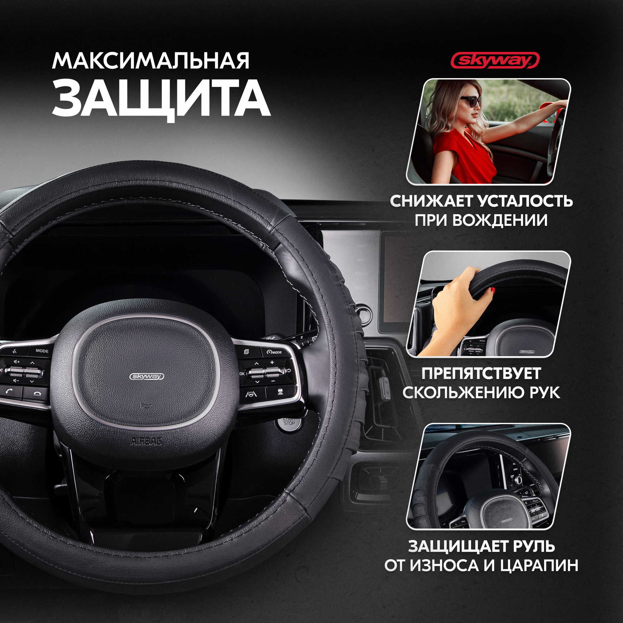 Оплетка на руль Real-5 SKYWAY M (37-39) черный кожа, S01108008