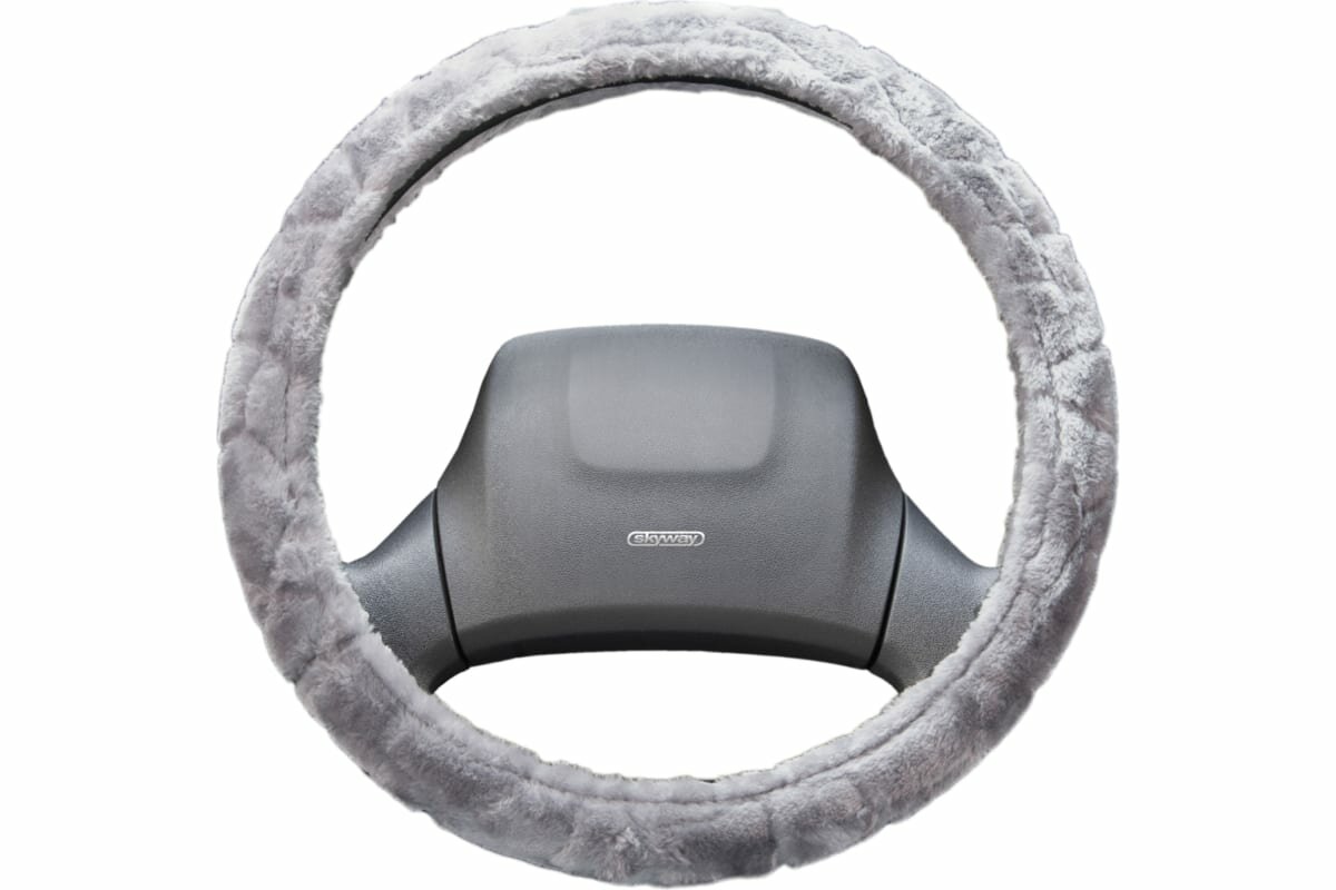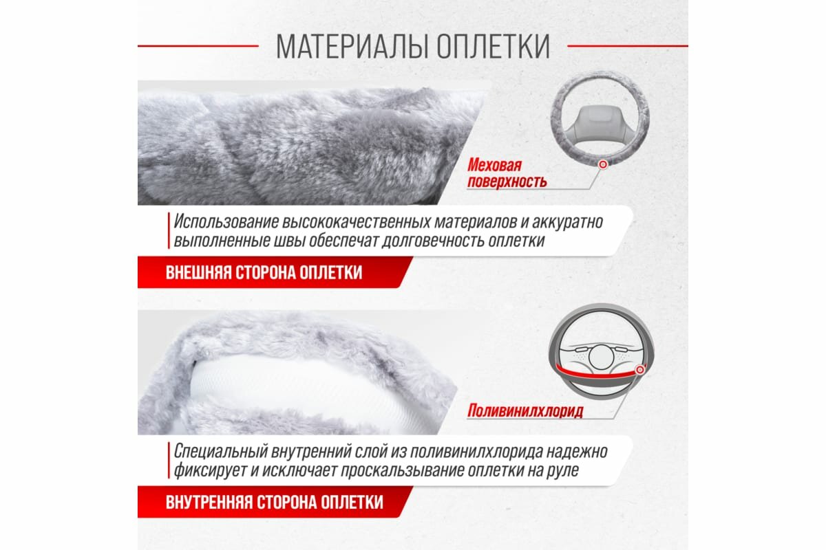 Оплётка руля SKYWAY меховая искуст серая ECO (L)