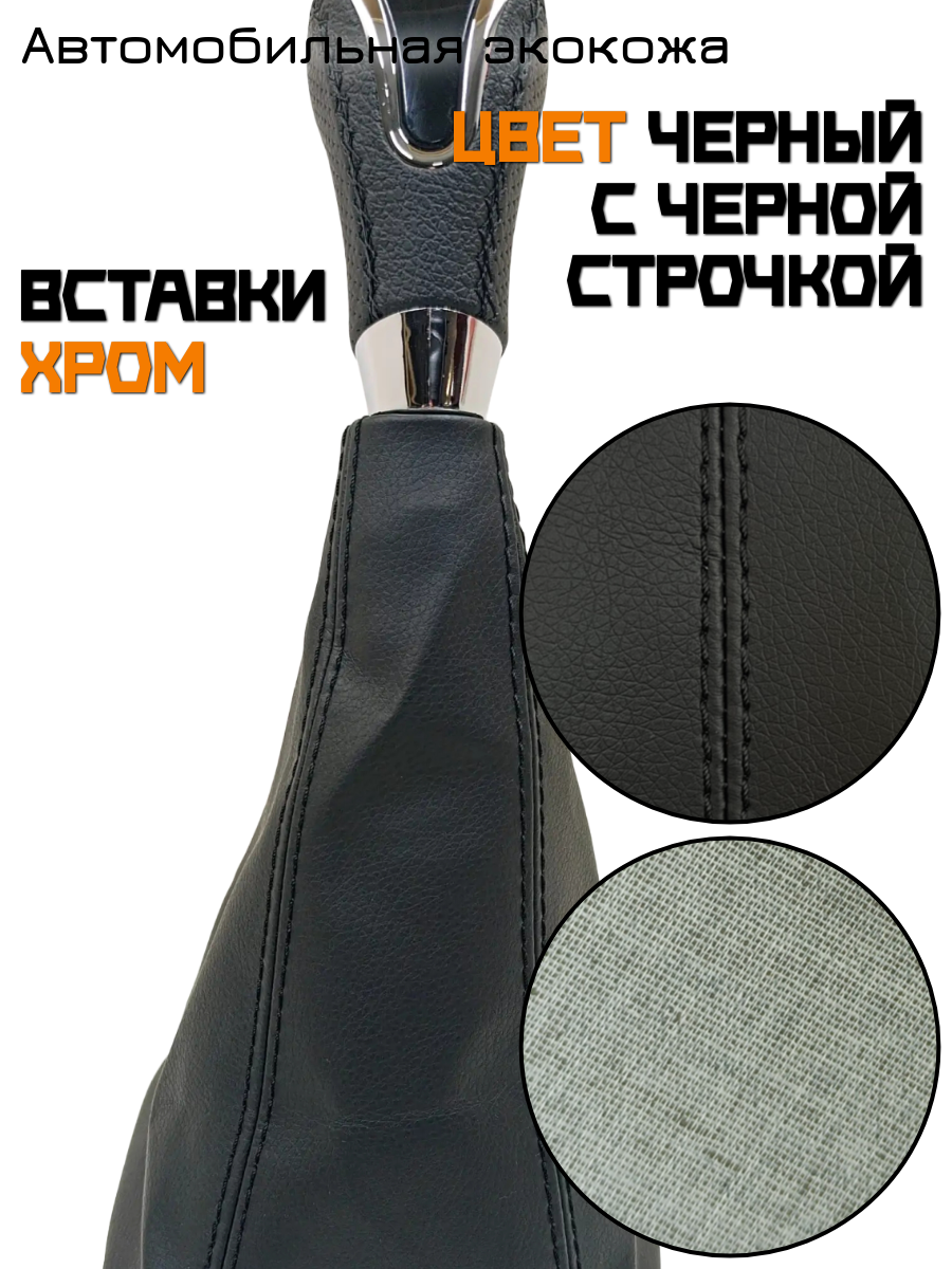 Ручка КПП с чехлом в стиле Весты на ВАЗ-2170 Лада Приора 1 с ВАЗ-2110 кулисой, черный с черной строчкой "рамка хром"