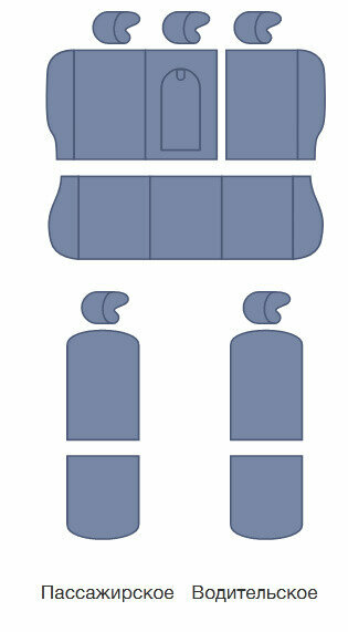 | Подробная комплектация | Cпинки передние - 2, сиденья передние - 2, спинка задняя большая - 1, спинка задняя малая - 1, сиденье заднее сплошное - 1, подголовники передние - 2, подголовники задние боковые - 2, подголовник задний центральный - 1, подлокотник задний – 1. |