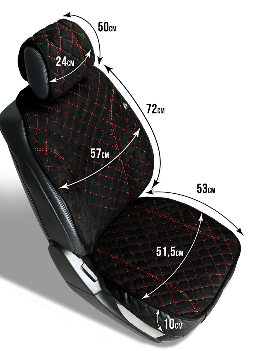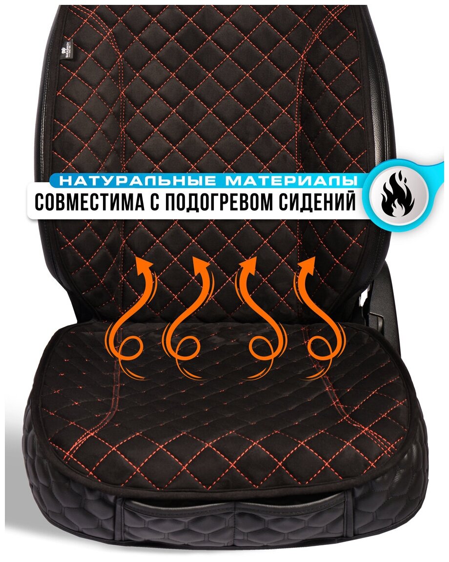 BARASHKOV/ Накидка из алькантары на переднее сиденье автомобиля. Модель XL/ черный,красная строчка