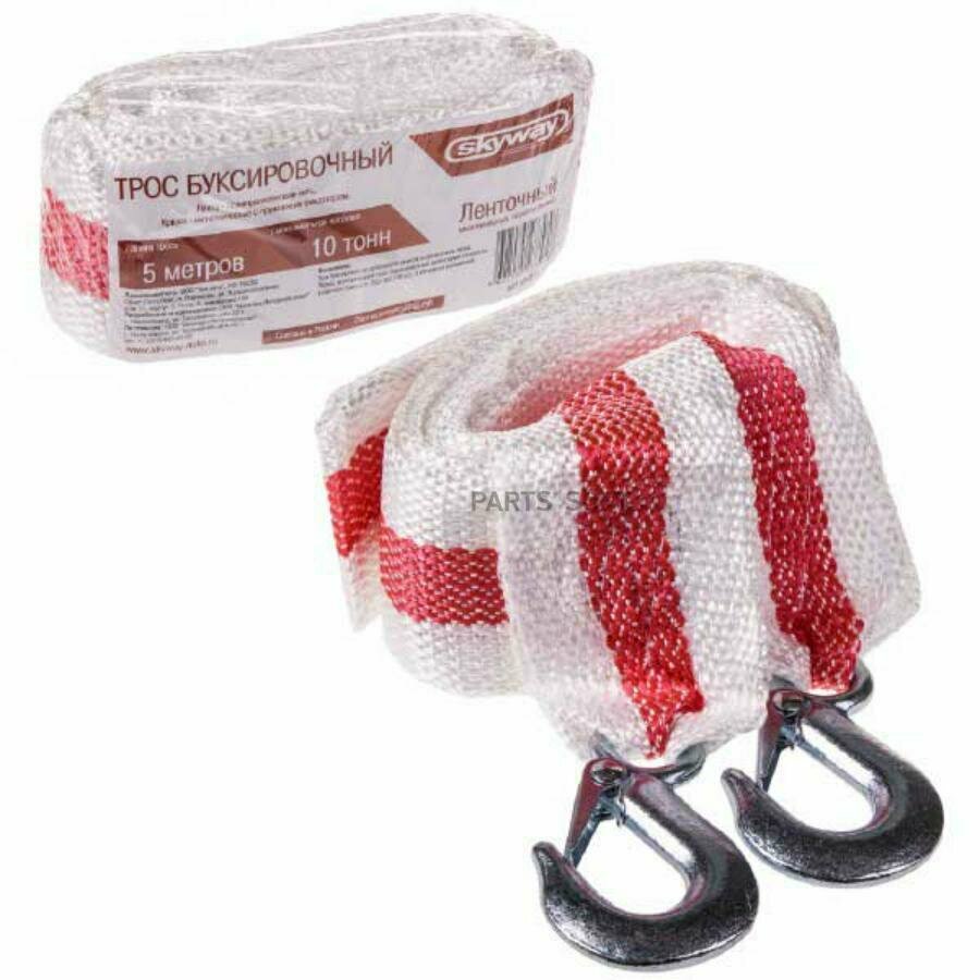 Купить SKYWAY S03101015 Трос буксировочный лента 10т 5м 2 крюка в пакете; SKYWAY