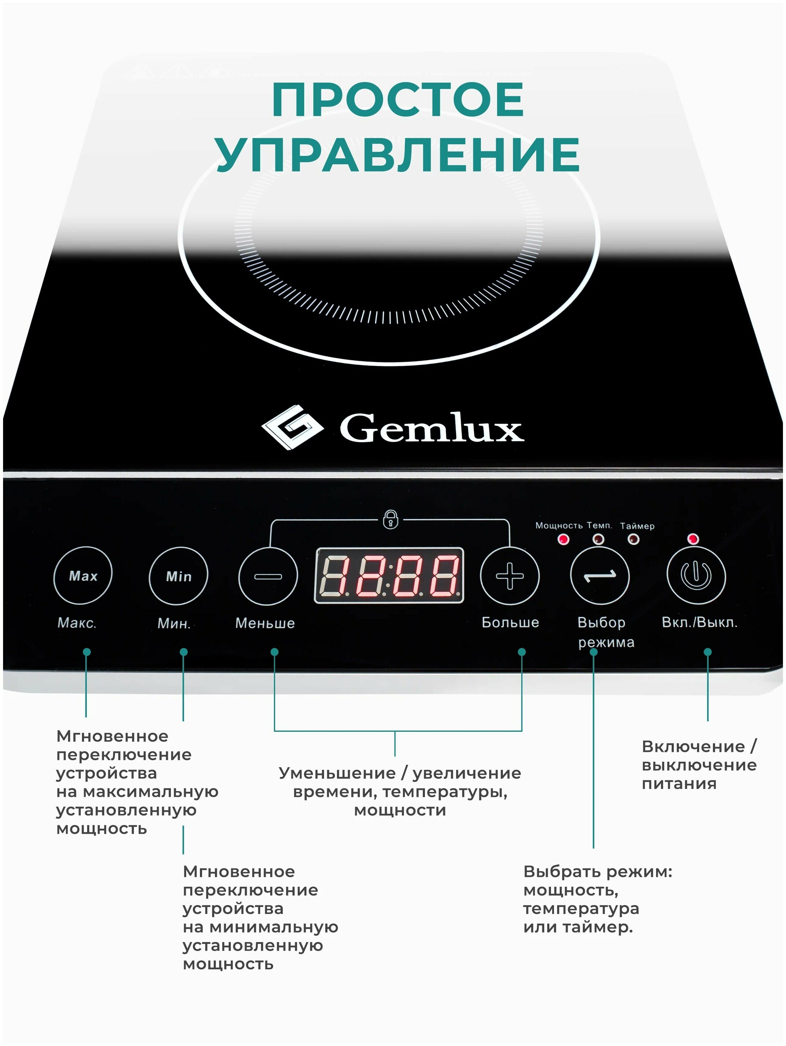 Плита электрическая индукционная GEMLUX GL-IP20A для самогоноварения, 1 конфорка, 2000 Вт, кухонная электроплитка, электроплита для кухни, настольная варочная панель стеклокерамика