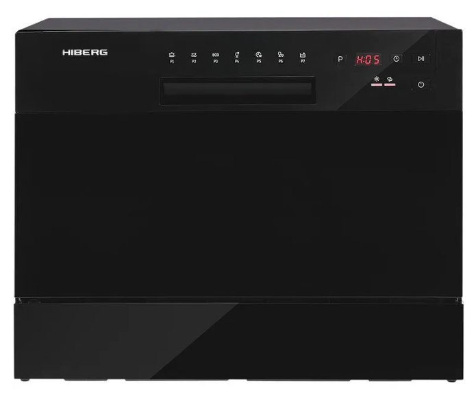 Посудомоечная машина HIBERG T56 615 B, отдельностоящая, возможность встраивания, mini, 7 программ, 2 корзины, цвет черный