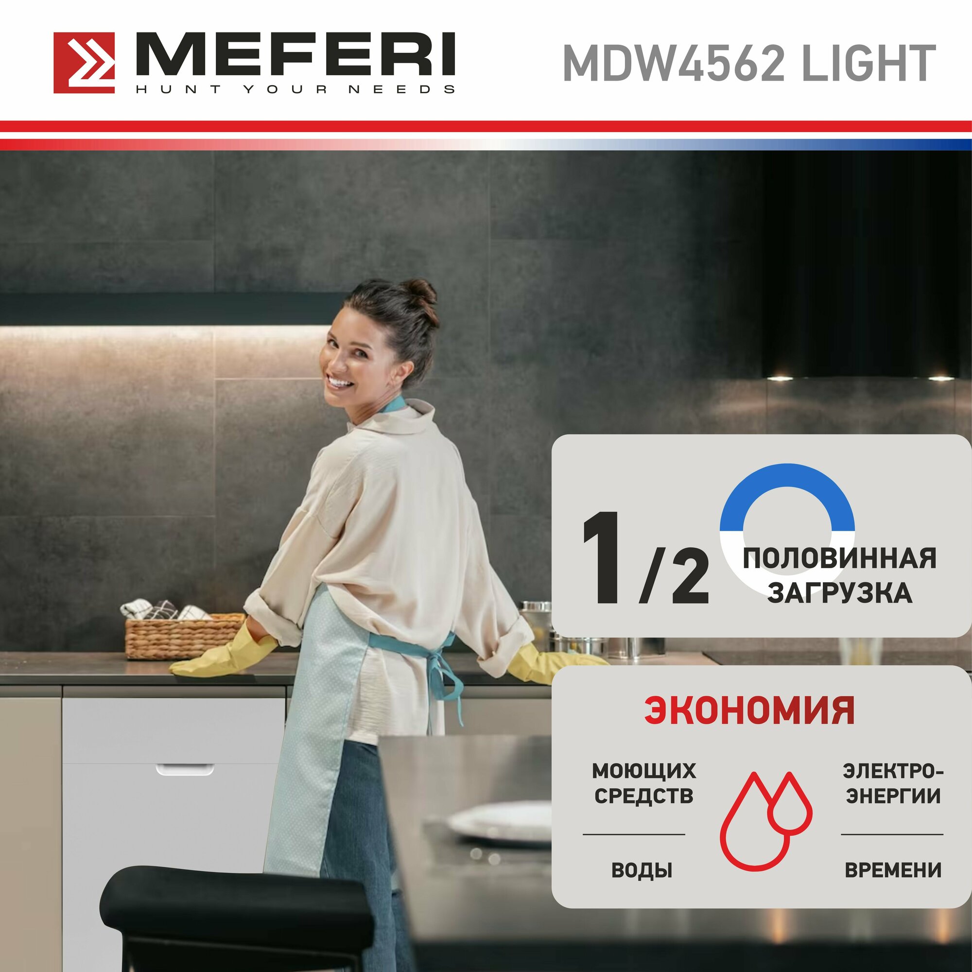 Встраиваемая посудомоечная машина MEFERI MDW4562 LIGHT, 45 см, с защитой от протечек интересное: