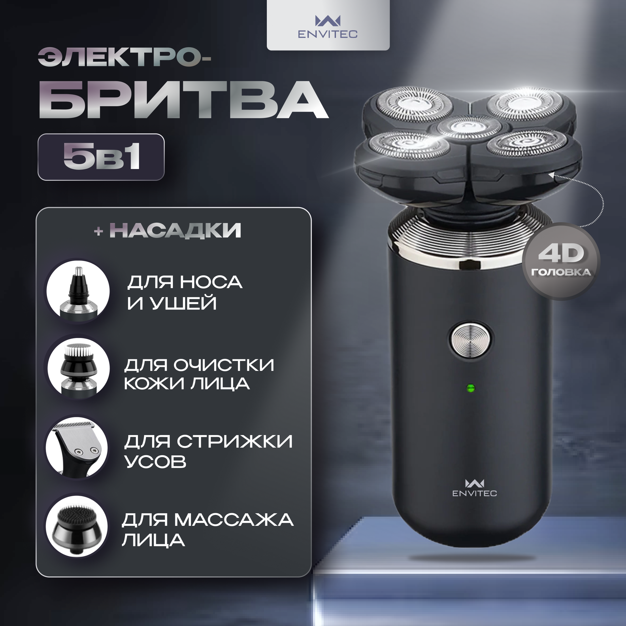 Электробритва Envitec мужская для лица и головы 4D с дополнительными 5 насадками/электрическая бритва мужская/домашняя/для бритья головы, бороды