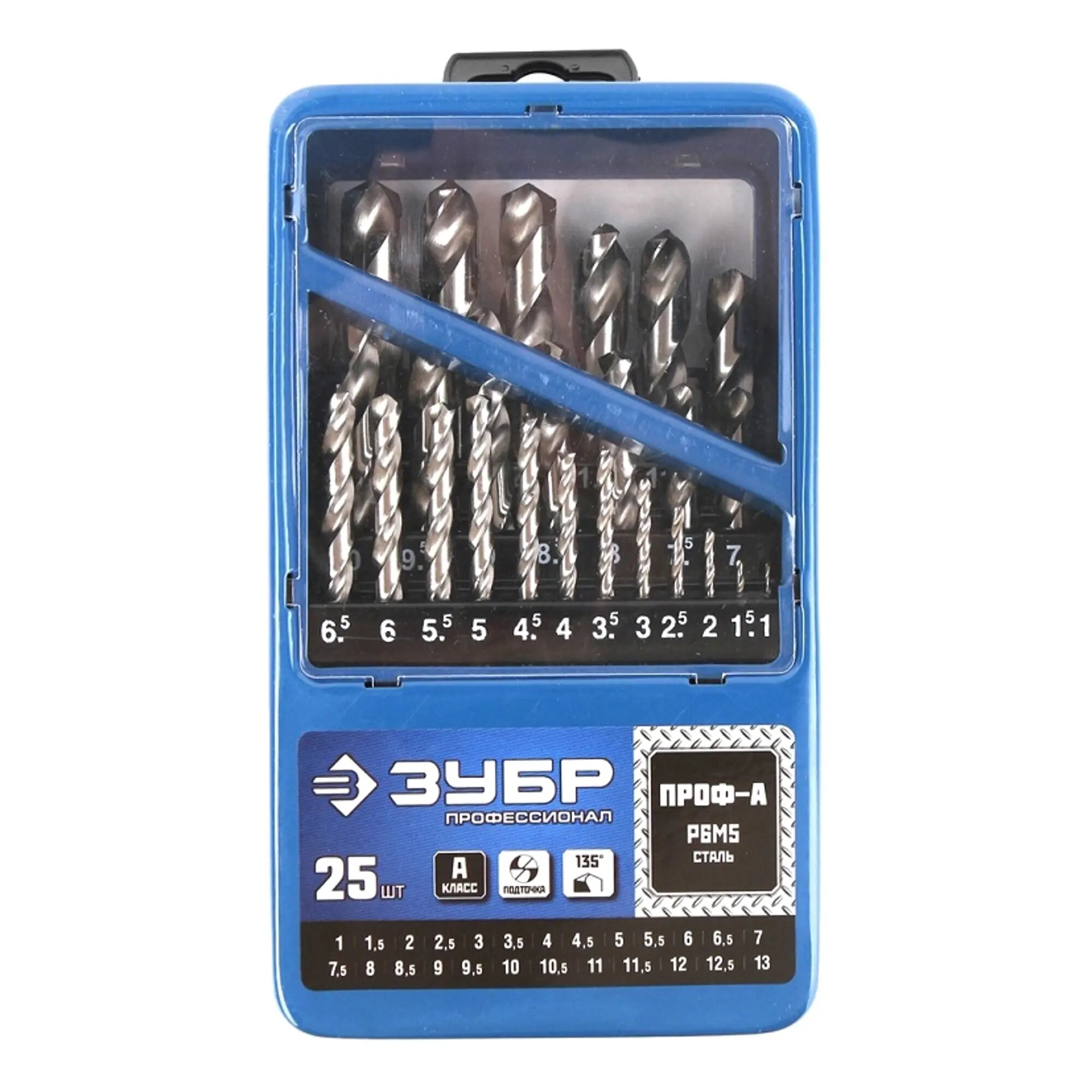 ЗУБР Набор сверл по металлу 25 шт (d=1-13 мм), Проф-А, класс А, сталь Р6М5, ЗУБР Профессионал, ( 29625-H25 )