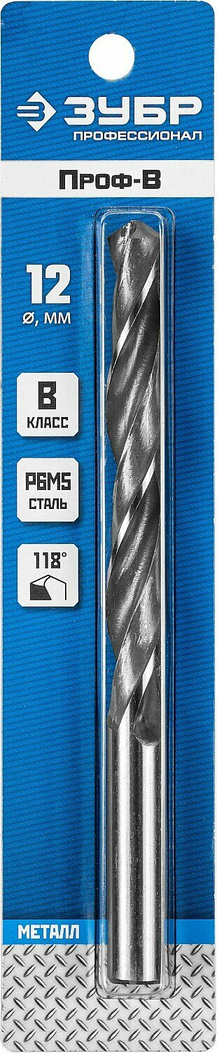 ЗУБР ПРОФ-в, 12.0 х 151 мм, сталь Р6М5, класс В, сверло по металлу, Профессионал (29621-12)