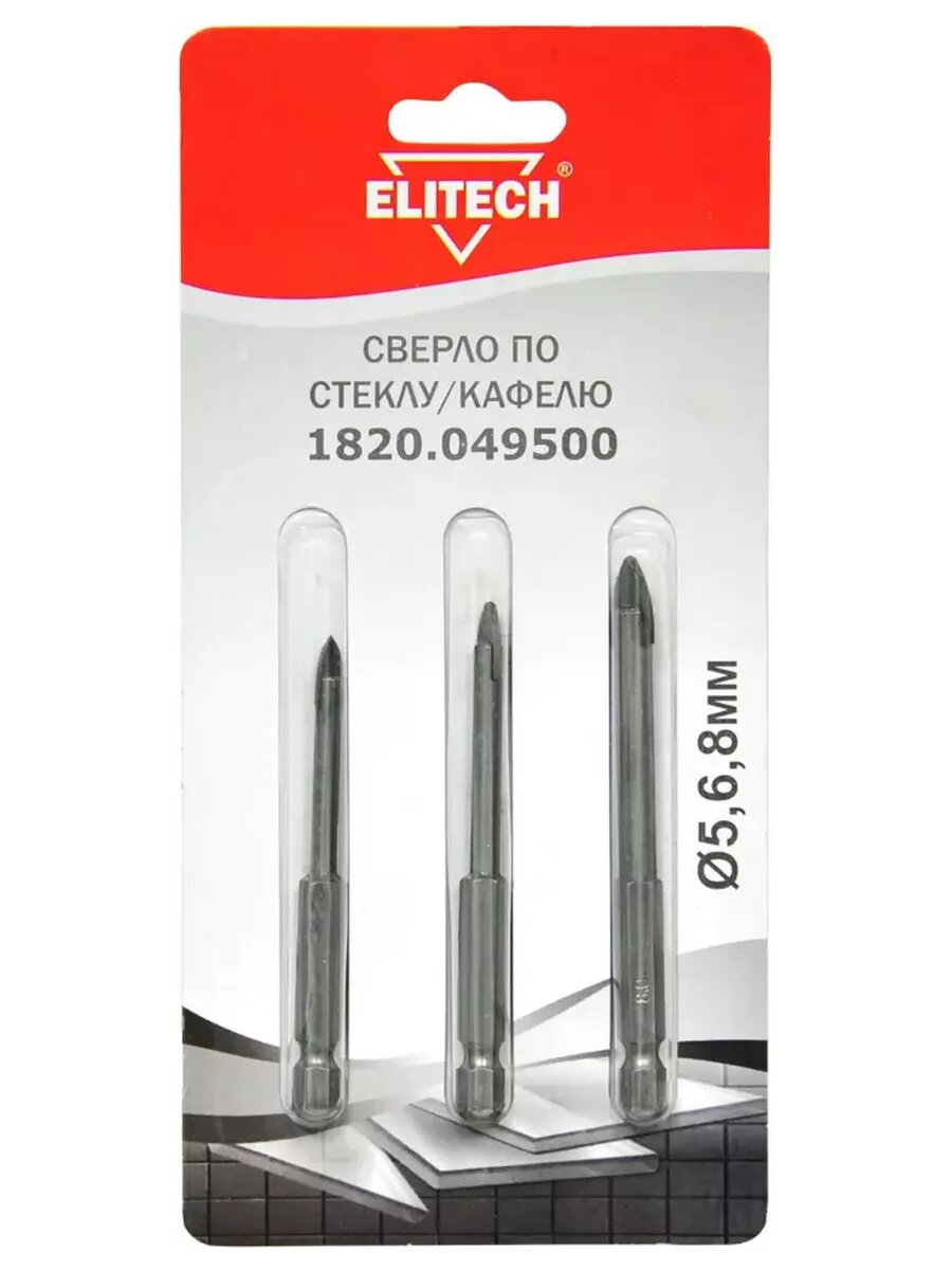 ELITECH 1820.049500 Набор сверл по стеклу 3шт интересное: