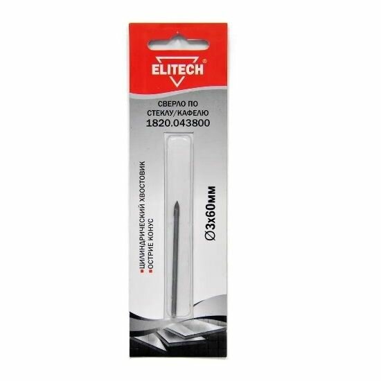 Сверло Elitech 1820.043800 по каф/стекл Д=3мм Дл=60мм (1пред.) для дрелей