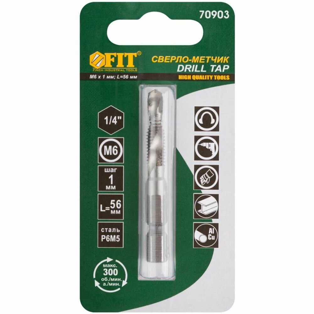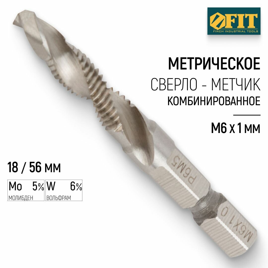 Купить FIT Сверло-Метчик комбинированное метрическое, М6х1,0 мм, 18/56 мм 70903