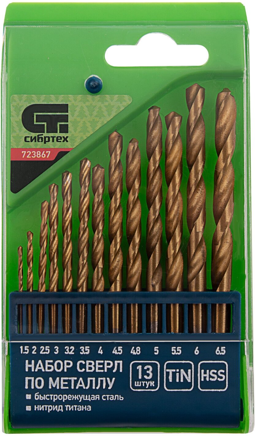 Набор сверл по металлу "СИБРТЕХ", нитридтитановые, 1.5 - 6.5 мм, HSS, 13 шт (1шт.) интересное: