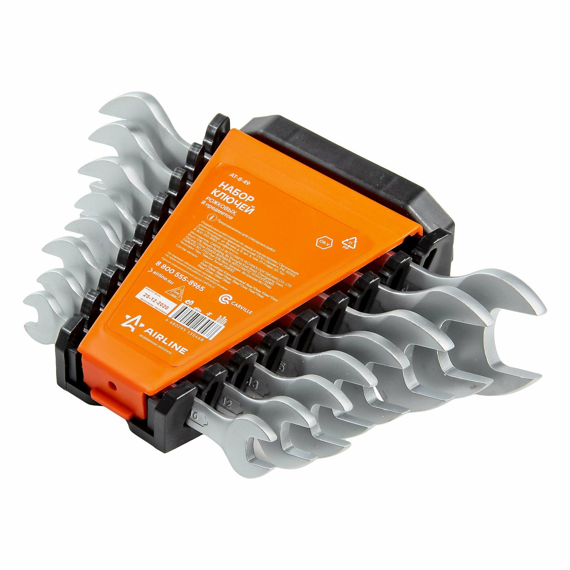 AIRLINE AT-8-49 Набор ключей рожковых 8 предм(8*10,10*12,12*13,14*15,13*17,17*19,19*22,22*24) пласт держат. (AT-8-49