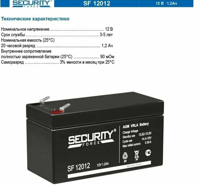Аккумулятор 12В 1.2А.ч Security Force SECURITY FORCE SF 12012 (1 шт.) интересное:
