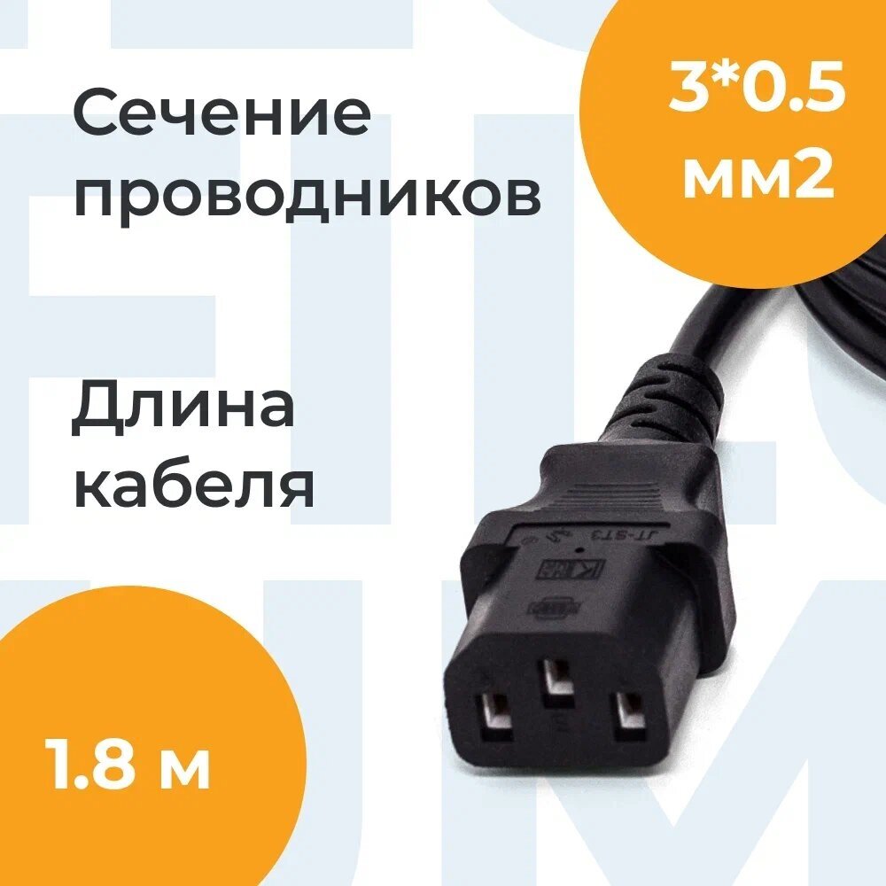 Filum Кабель питания cee 7/7- с13, 3x0.5мм?, 220в, 6a, чёрный, 1.8м FL-PC6-EU-C13-1.8M