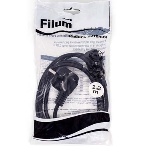 Купить Кабель питания Filum FL-PC10-EU-C13-1.2M CEE 7/7- С13, 3х0.75мм², 220В, 10A, чёрный, 1.2м