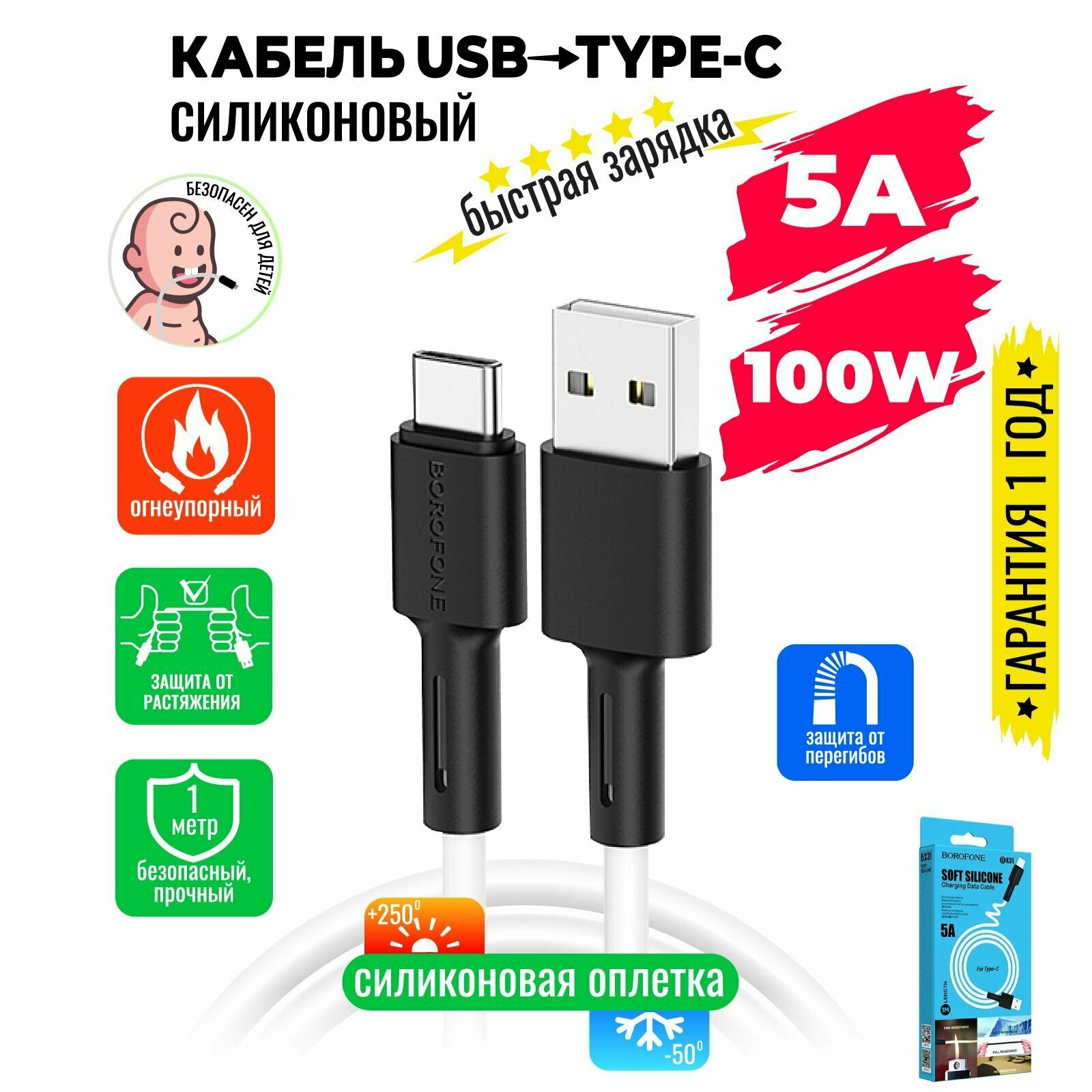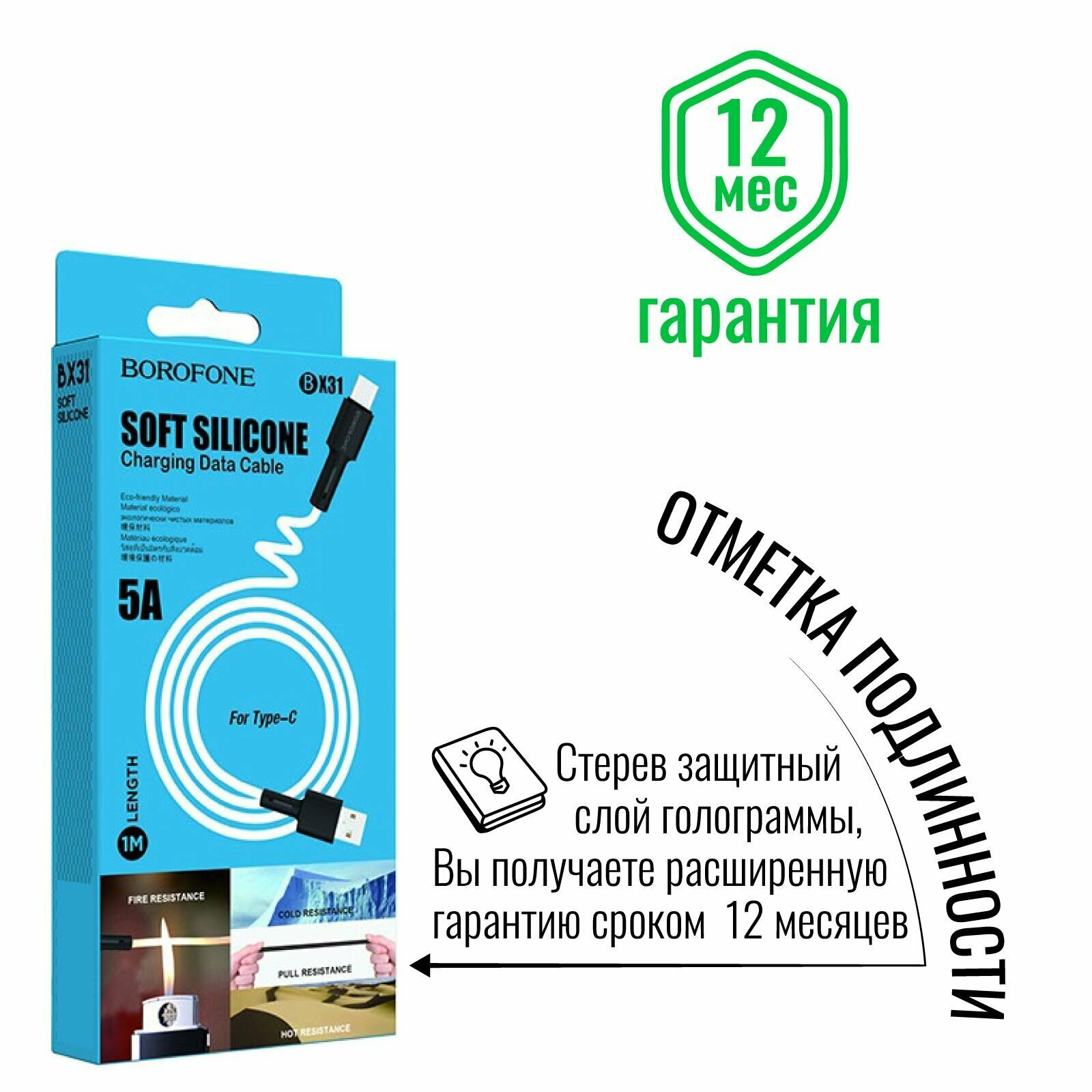 Кабель USB BOROFONE BX31 Silicone USB - Type-C, 5A, 1 м, белый