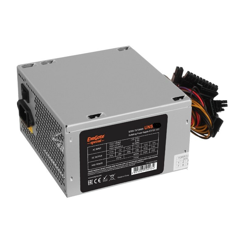 EX292164RUS, Блок питания 750W ExeGate UNS750 (ATX, 12cm fan, 24pin, (4+4)pin, PCI-E, 3xSATA, 2xIDE)