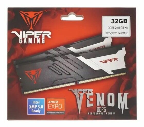 Модуль памяти Patriot Memory Viper Venom DDR 5 DIMM PC5-59200 7400Mhz CL36 - 32Gb (2x16Gb) PVV532G740C36K
