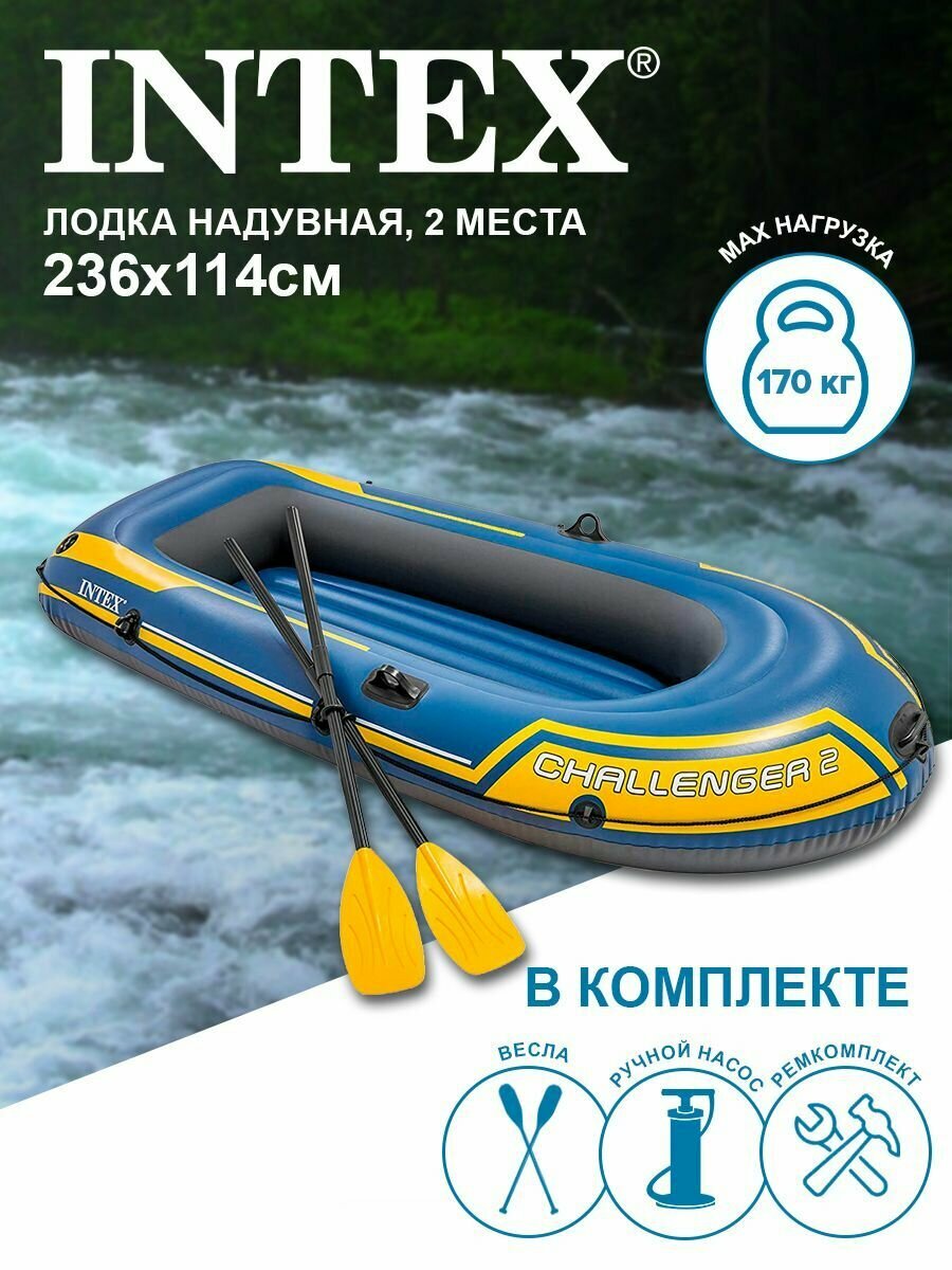 Лодка надувная INTEX CHALLENGER 2 SET, 2 мест. + ручной насос, пластиковые весла интересное: