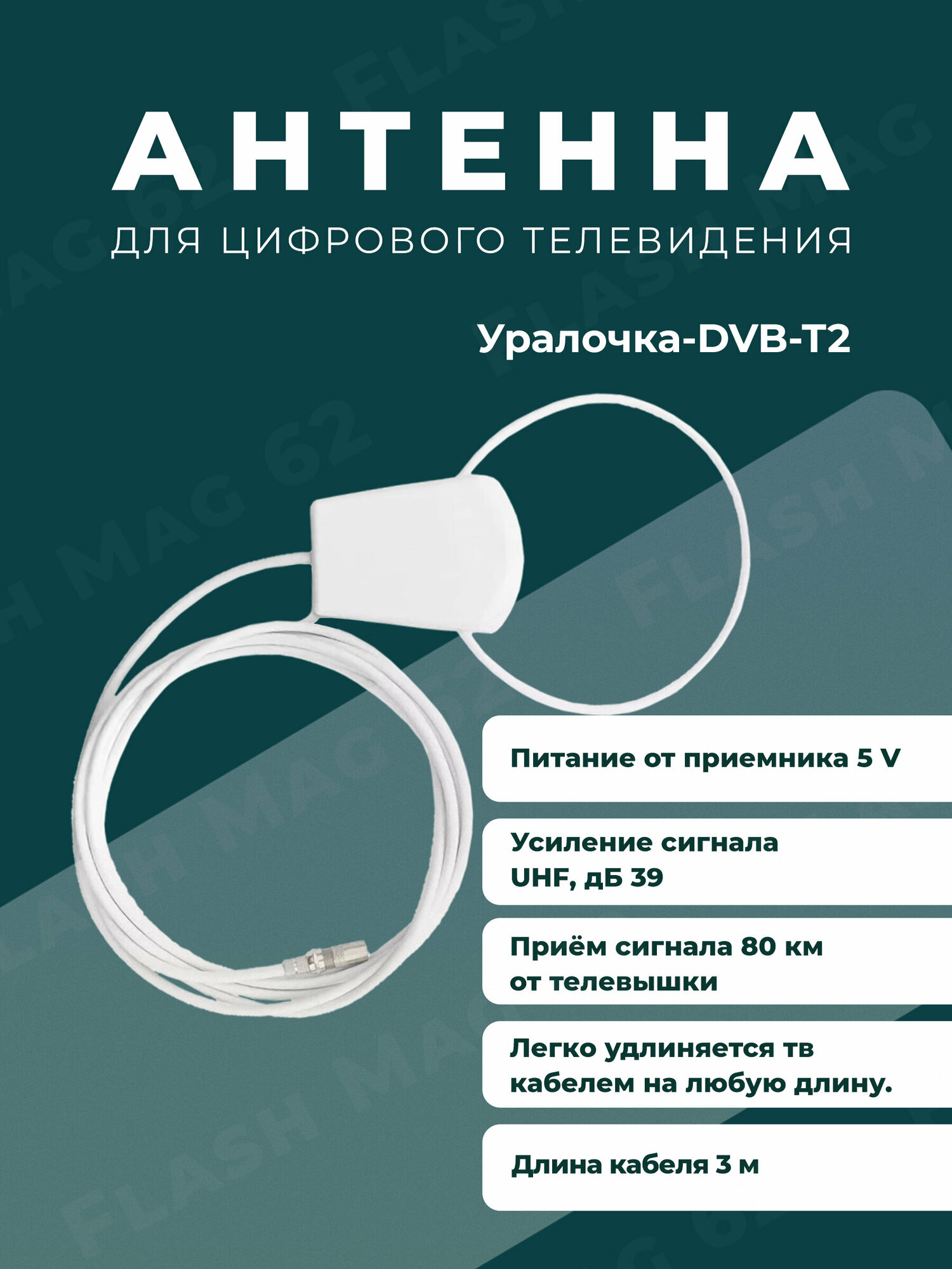 Антенна комнатная Уралочка DVB-T2 5В активная (3 метра)